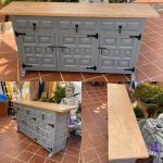 – Castillan sideboard solid natural wooden top with olive green panels 160 x 36.50 x 78cms Price 260€
