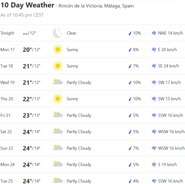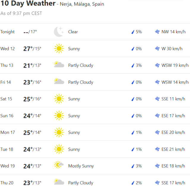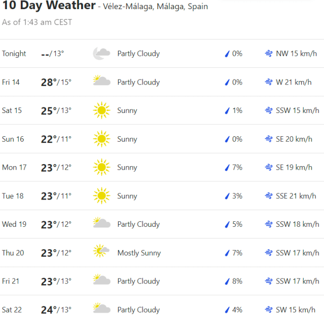 Local Weather: https://www.accuweather.com/en/es/torre-del-mar/306652/weather-forecast/306652