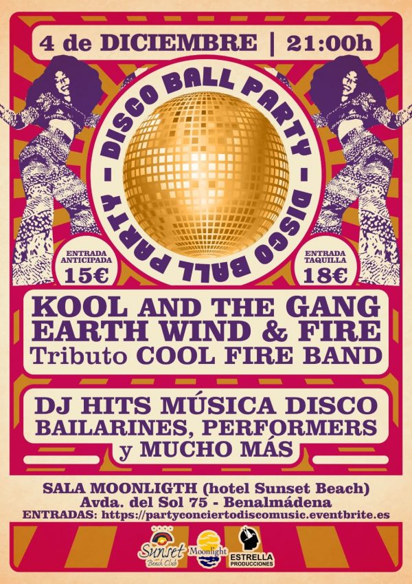 Tickets & Info: https://www.eventbrite.es/e/entradas-fiesta-concierto-disco-tributo-a-kool-the-gang-y-earth-wind-fire-dj-208788320487