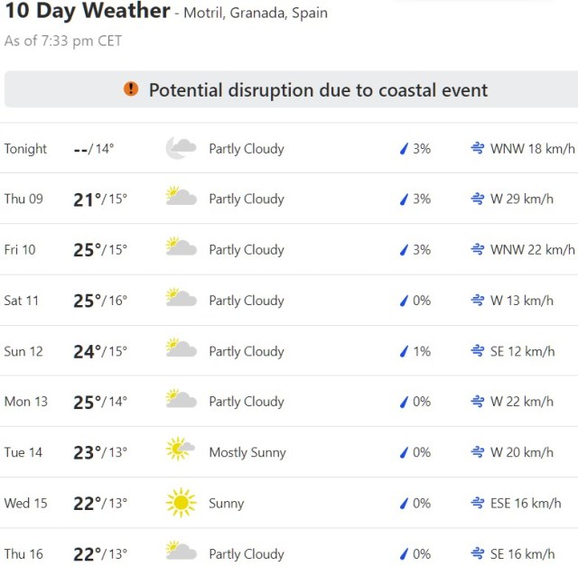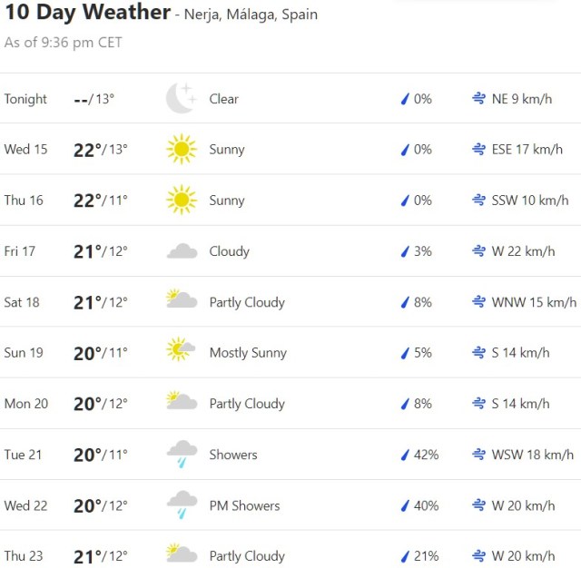 Local Weather: https://www.accuweather.com/en/es/torre-del-mar/306652/weather-forecast/306652