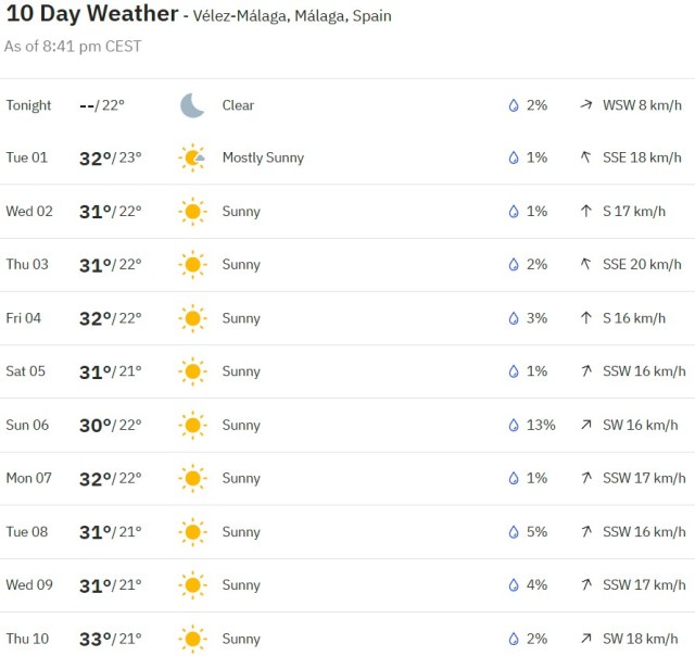 Local Weather: https://www.accuweather.com/en/es/torre-del-mar/306652/weather-forecast/306652