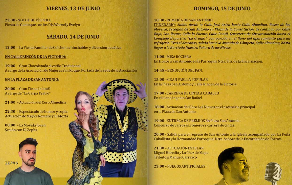 Groups: The Coro Romero de El Trapiche, Coro Luz del Alba de Torre del Mar, Coro de la Buena Amistad, Coro de la Hermandad del Rocío de Vélez-Málaga, Coro Rociero Camino de Olivares de Periana, Coro de la Virgen del Carmen de Almayate and Nuestra Señora de Covadonga will be present.