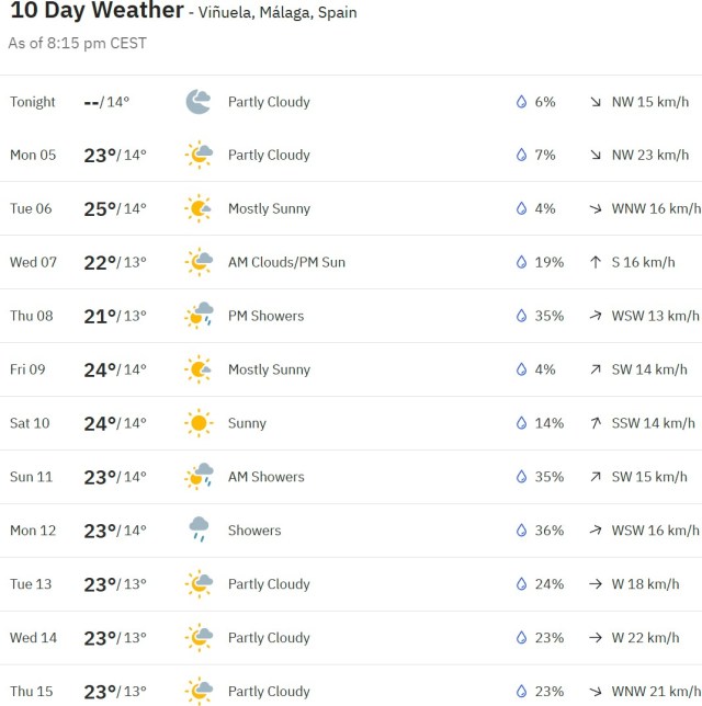 Local Weather: https://www.accuweather.com/en/es/torre-del-mar/306652/weather-forecast/306652